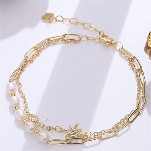 Een prachtige gelaagde armband versierd met zoetwaterparels en afgewerkt met een fonkelende ster bedel, om je te helpen nog helderder te stralen dan je al doet. Eenvoudig maar prachtig, kan deze veelzijdige armband voor elke gelegenheid worden gedragen.