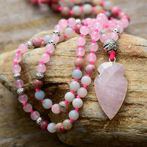 Omarm het liefdevolle gezelschap van deze weelderige Rozenkwarts & Rhodoniet Ketting en vul jouw leven met comfort en vrede in elke dimensie...