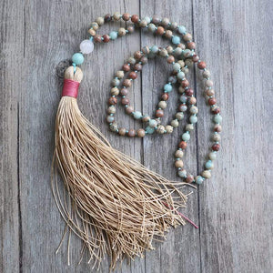 MATTE AMAZONIET EN JASPIS MALA KETTING