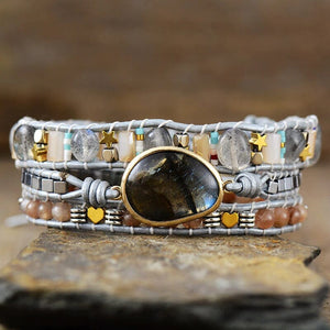 Labradoriet, een iriserende steen van pure mystiek, is omgeven door sierlijke harten en sterren en andere prachtige kralen in deze betoverende armband. In het algemeen staat Labradoriet bekend als een steen van transformatie. Ben je klaar om de unieke energie van Labradoriet te omarmen?