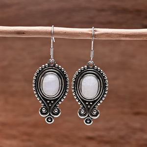 Een ingewikkeld ontworpen paar oorbellen met het prachtige maansteen kristal, een prachtige, iriserende edelsteen die bekend staat om het bevorderen van rust. Deze bungelende oorbellen zijn de perfecte finishing touch voor een boho en toch vintage look.