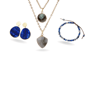 Ervaar de kracht van spirituele afstemming, innerlijke rust en energetische bescherming met onze Mystieke Harmonie Sieradenset. Deze exclusieve set bevat drie handgemaakte stukken: de Oorbellen van Lapis Lazuli voor het Zesde Chakra, de Tibetaanse Energie Armband, en het Beschermende Schild Hangerketting in Labradoriet. Elk item biedt unieke helende eigenschappen om je in balans en gefocust te houden en je te verbinden met je hogere zelf.