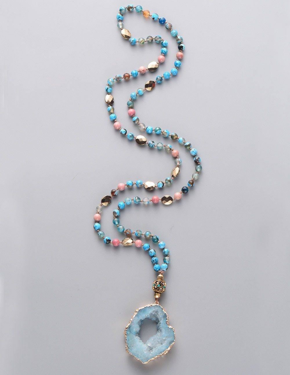 NEPALEES DRUZY AGAAT ONYX KWARTS & RHODONIET KETTING