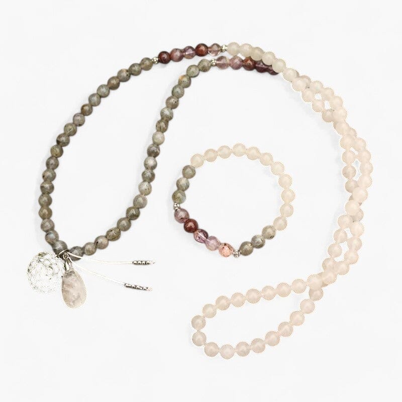 108 NATUURLIJKE LABRADORIET WITTE JADE EN AMETHIST MALA KRALEN KETTING / ARMBAND
