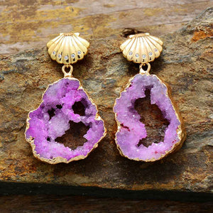 Werp een blik op deze Druzy Stone Oorbellen en laat je opgaan in hun betoverende elementaire energie!