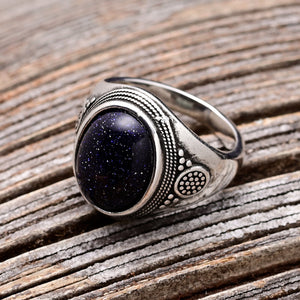 Maak een statement zonder een woord te zeggen met deze gedurfde en unieke ring. De ster van de show is de gladde, hemelse Blauwe Zandsteen, omlijst met een prachtig gedetailleerde band ontworpen met een vintage stijl in het achterhoofd.