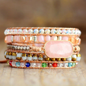 Sta jezelf toe om liefde, vriendelijkheid en mededogen te ervaren... Sta de helende krachten van Rozenkwarts toe om zich met je te verbinden en elke centimeter van je zachte ziel kracht bij te zetten met deze prachtige glinsterende Meerlaagse Armband!