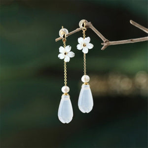 Bereid je voor om te stralen met dit prachtige paar oorbellen dat moeiteloos de schoonheid van de natuur combineert met elegantie. Een klassieke gouden knop, gevolgd door een sierlijke witte bloem, afgewerkt met een tijdloze parel, gezeten op de geaarde witte agaat. Mooi en puur, je zult nog meer stralen dan je al doet.