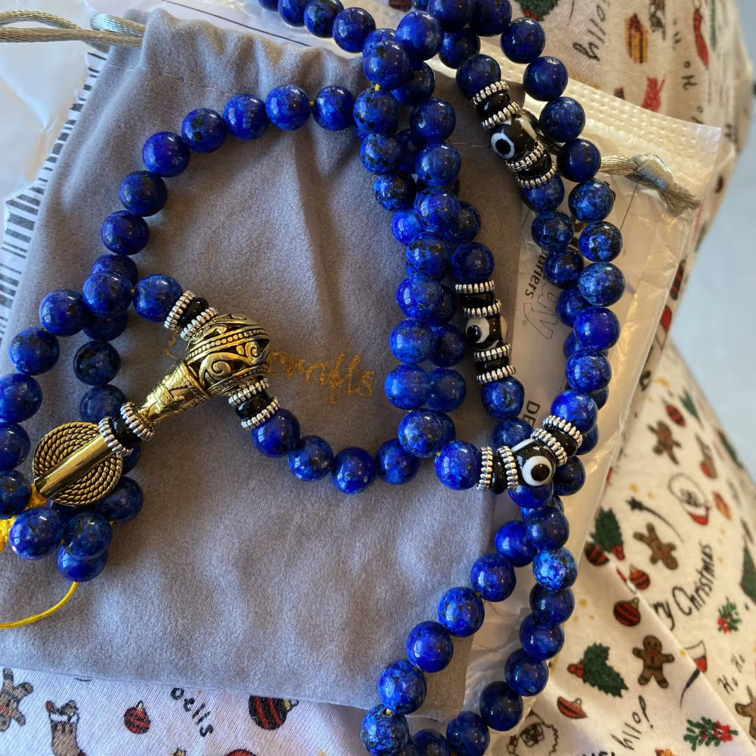 Het Lapis Lazuli Derde Oog Mala is een van de krachtigste natuurlijke hulpmiddelen voor het activeren van spirituele vermogens – gemaakt van dezelfde diepblauwe steen die al door Egyptische farao's en Tibetaanse monniken werd toegeschreven aan hun legendarische krachten.