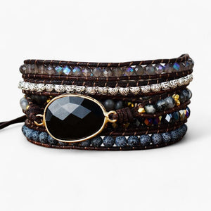 Deze unieke wikkelarmband is voorzien van een combinatie van krachtige helende stenen! Het is prachtig handgemaakt met natuurlijke Onyx en Quartz stenen kralen en een prachtig Onyx stenen middenstuk.